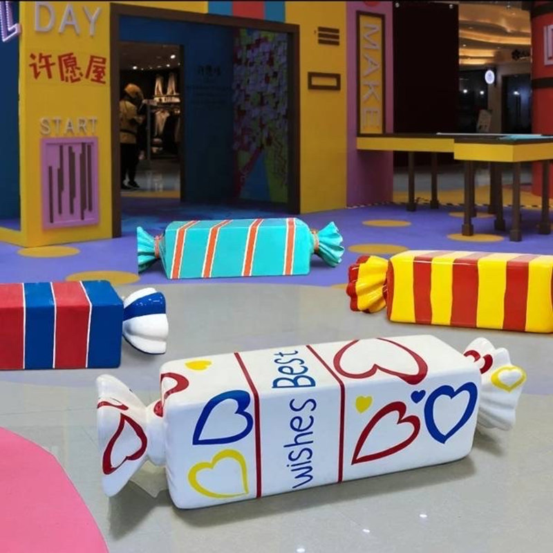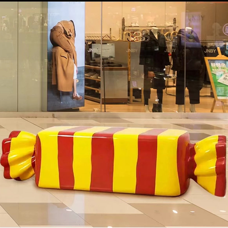 A escultura dos assentos de doces geralmente é feita de materiais de resina de fibra de vidro de alta qualidade, garantindo que tenha beleza artística e forte durabilidade. Sua inspiração de design é derivada principalmente de elementos doces doces, como pirulitos, sorvete, cones etc., com formas diversas e cores coloridas, que podem atrair rapidamente a atenção das pessoas. A escultura de assentos de doces é frequentemente usada para decoração em shopping centers, parques temáticos, restaurantes e outros lugares. Ele pode não apenas criar uma atmosfera alegre e animada, mas também fornecer aos turistas assentos de descanso exclusivos. Ao mesmo tempo, esse tipo de escultura também é altamente ornamental e pode ser usado como uma boa obra de arte para enriquecer a conotação cultural e a atmosfera artística do espaço. A escultura dos assentos de doces é altamente personalizável e pode ser personalizada de acordo com as necessidades específicas dos clientes e o ambiente do site, garantindo que a escultura esteja em harmonia com o ambiente circundante, adicionando mais diversão e interatividade ao espaço.