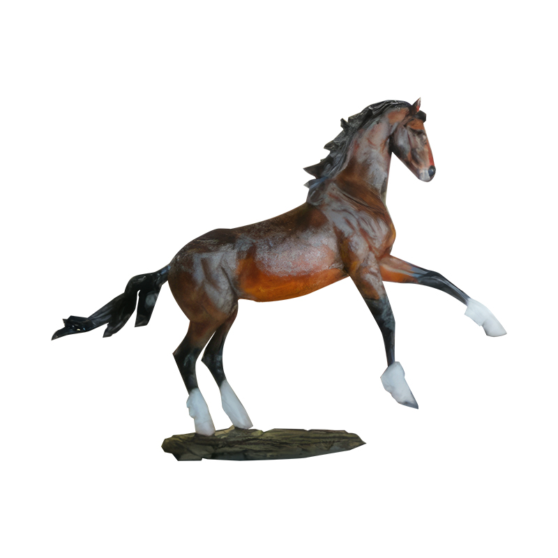 A escultura de cavalos simulada de fibra de vidro tem linhas de superfície lisa, formas bem proporcionadas, vívidas e realistas, e é adequado para decoração em uma série de decorações de cenas, como jardins, shoppings, paisagens, etc.