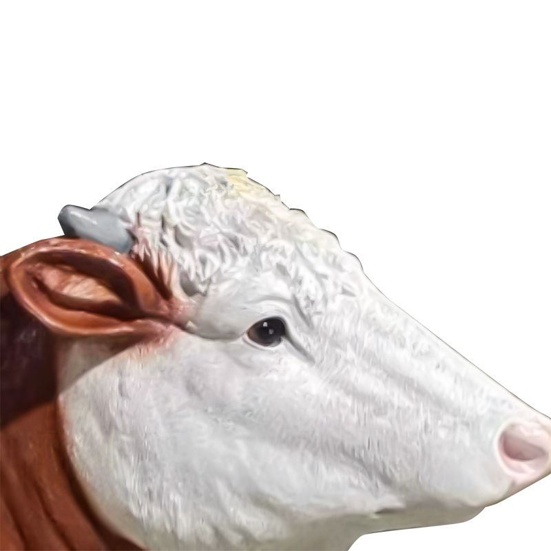 Alto grau de simulação: A escultura é esculpida e polida, e sua aparência é altamente semelhante à de uma vaca real, com detalhes como cabelos e textura claramente visíveis.
