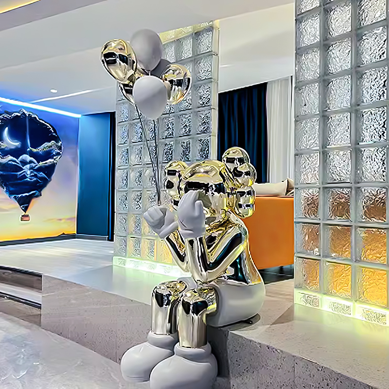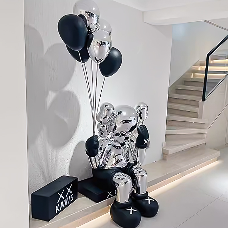KAWS is a well-known trendy brand in the United States, more notably its dolls, which are very personalized and recognizable and are extremely popular worldwide. This series of laws are all electroplated colors, different from ordinary painting paints. Kaws life-size sculptures are made of FRP (fiberglass reinforced plastic) combined with resin and vinyl. The layers of fiberglass and resin ensure durability and corrosion resistance, while being lightweight and strong, making them ideal for indoor and outdoor decoration or display. The sculpture surface can be electroplated. We also offer a variety of color options, including classic white, black, and custom glossy or matte paint.